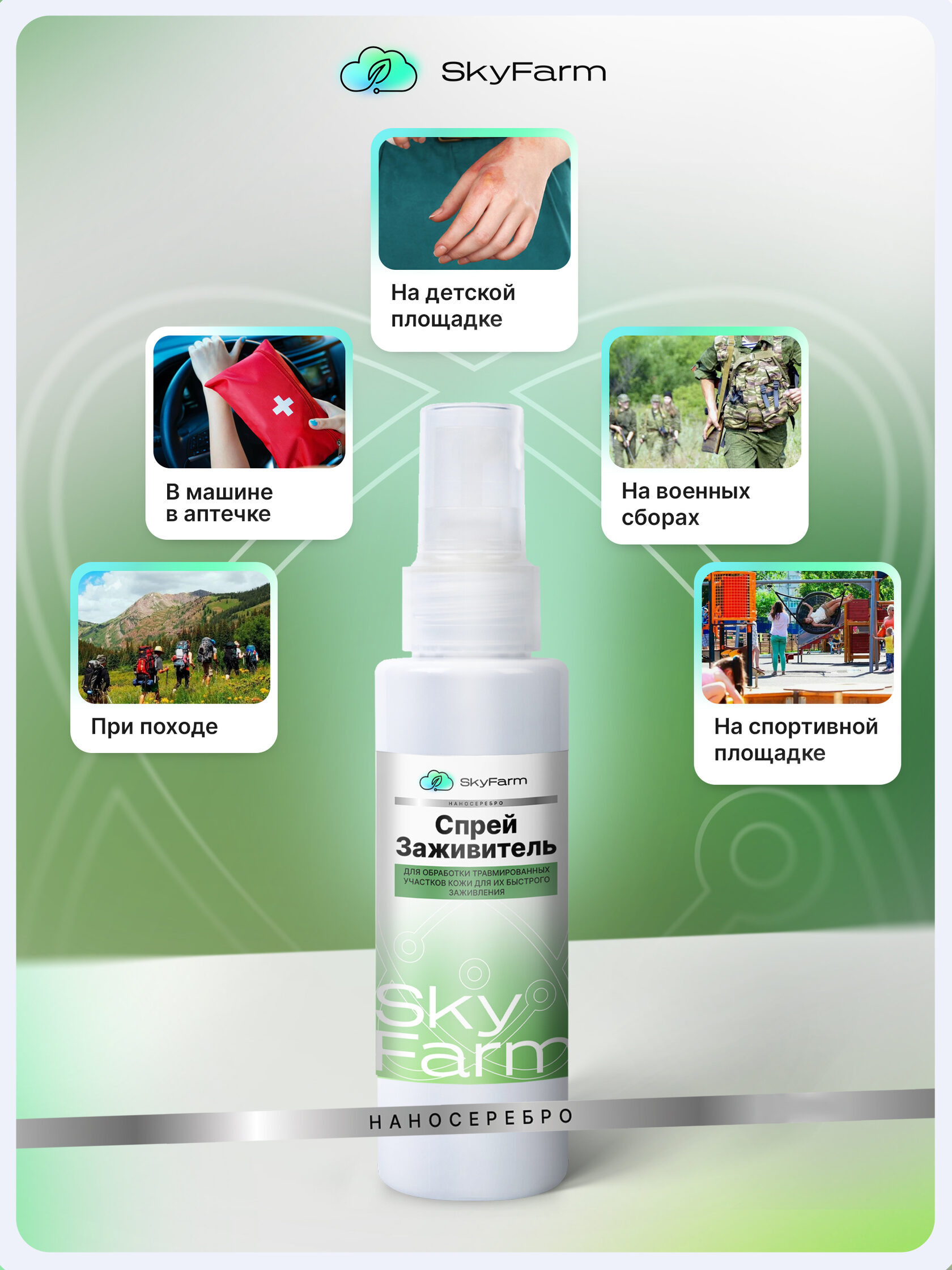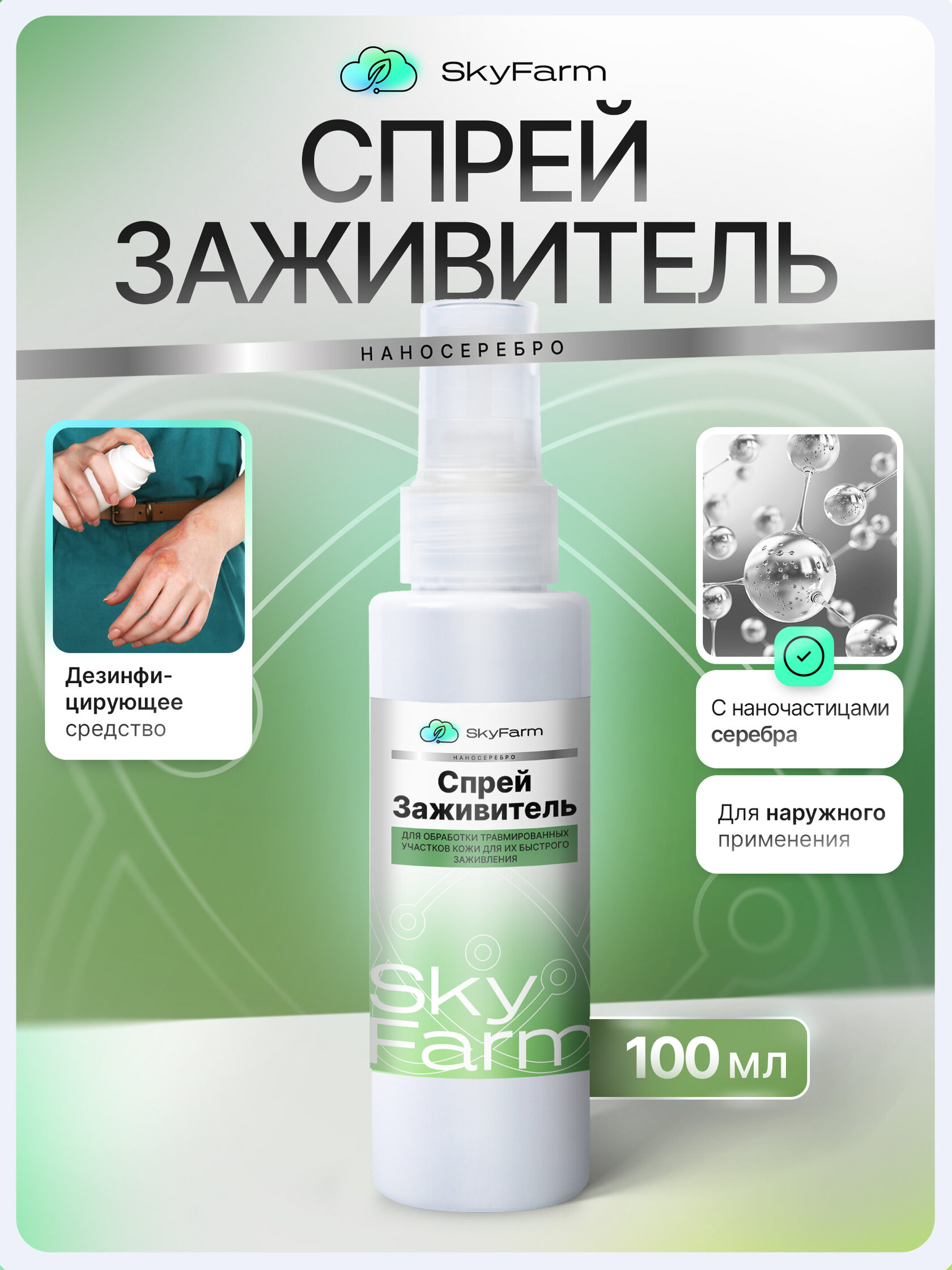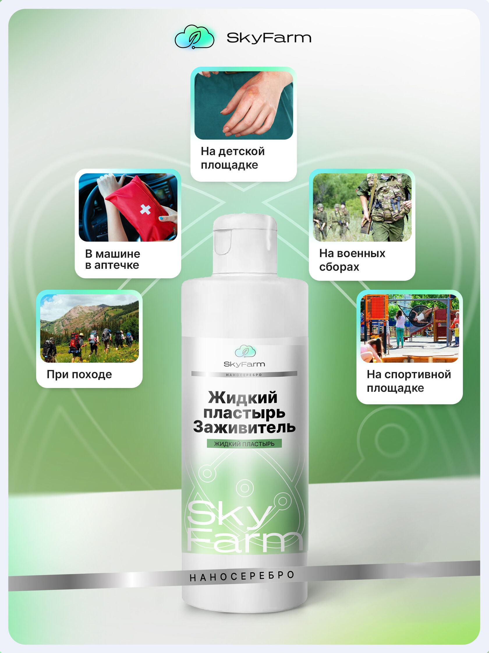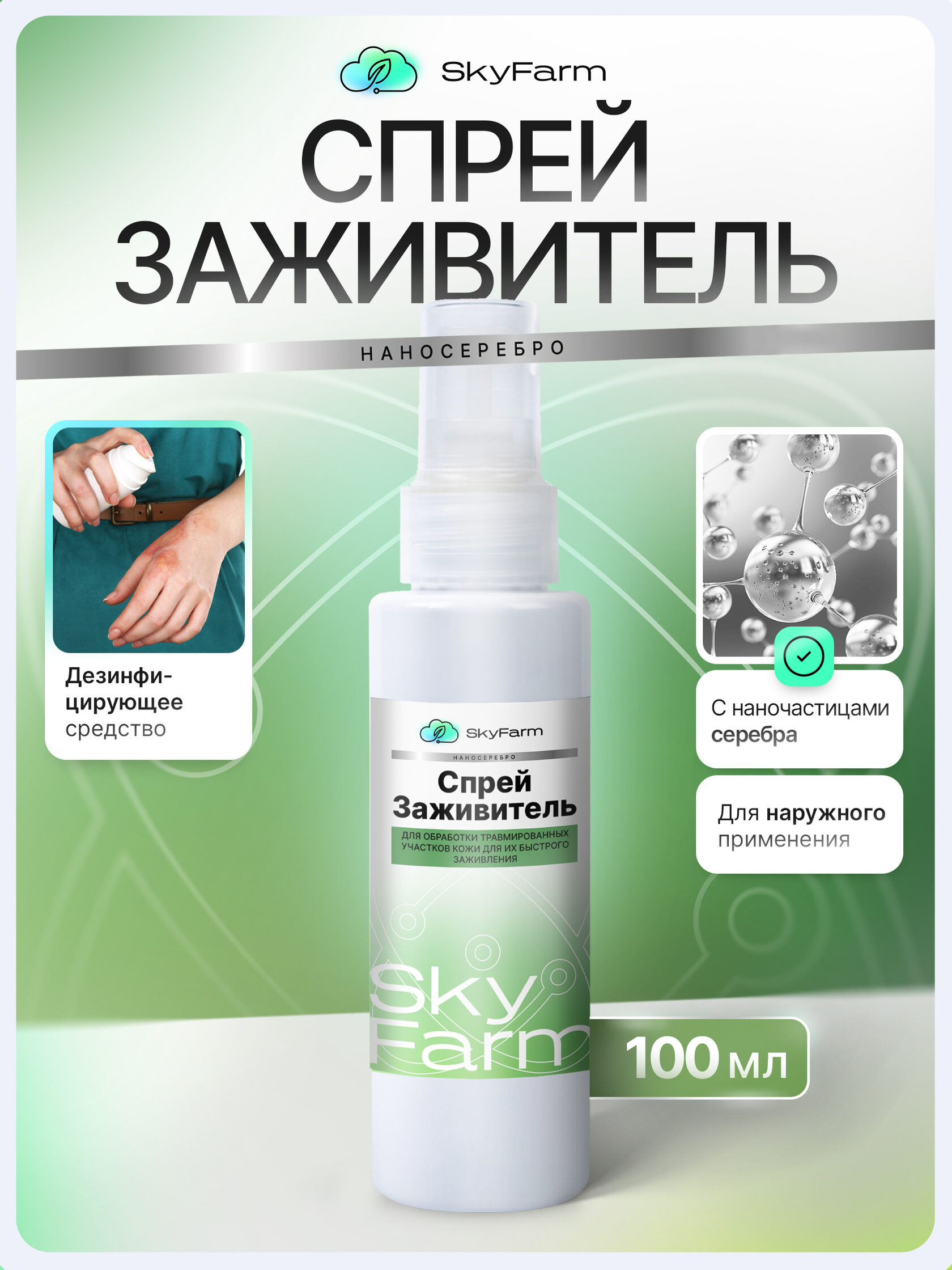 SkyFarm Health — это серия высокоэффективных средств на основе нано-серебра и современных биотехнологий. Они созданы для быстрой дезинфекции, заживления и защиты кожи — дома, на ферме, в дороге, в любых условиях.