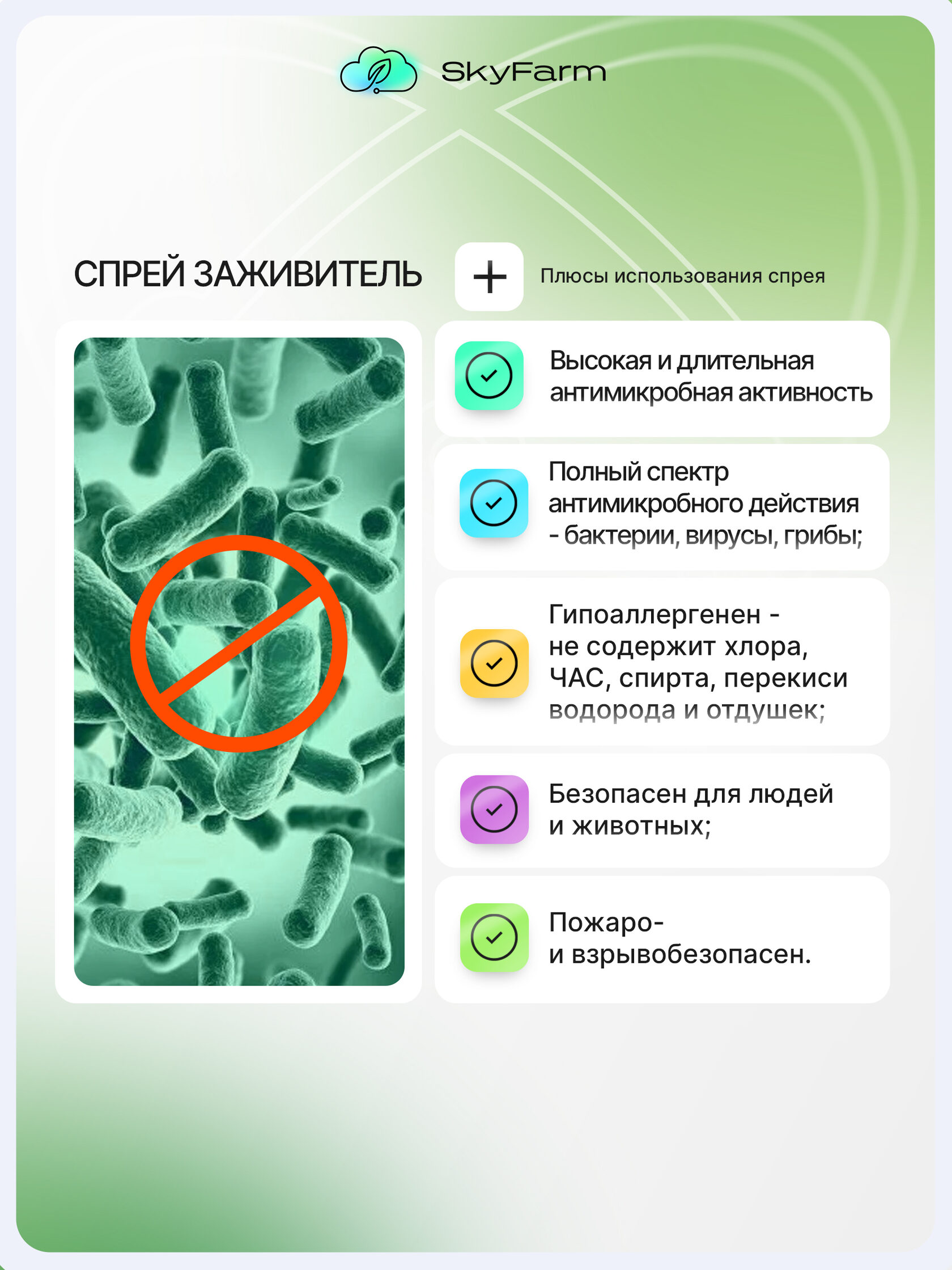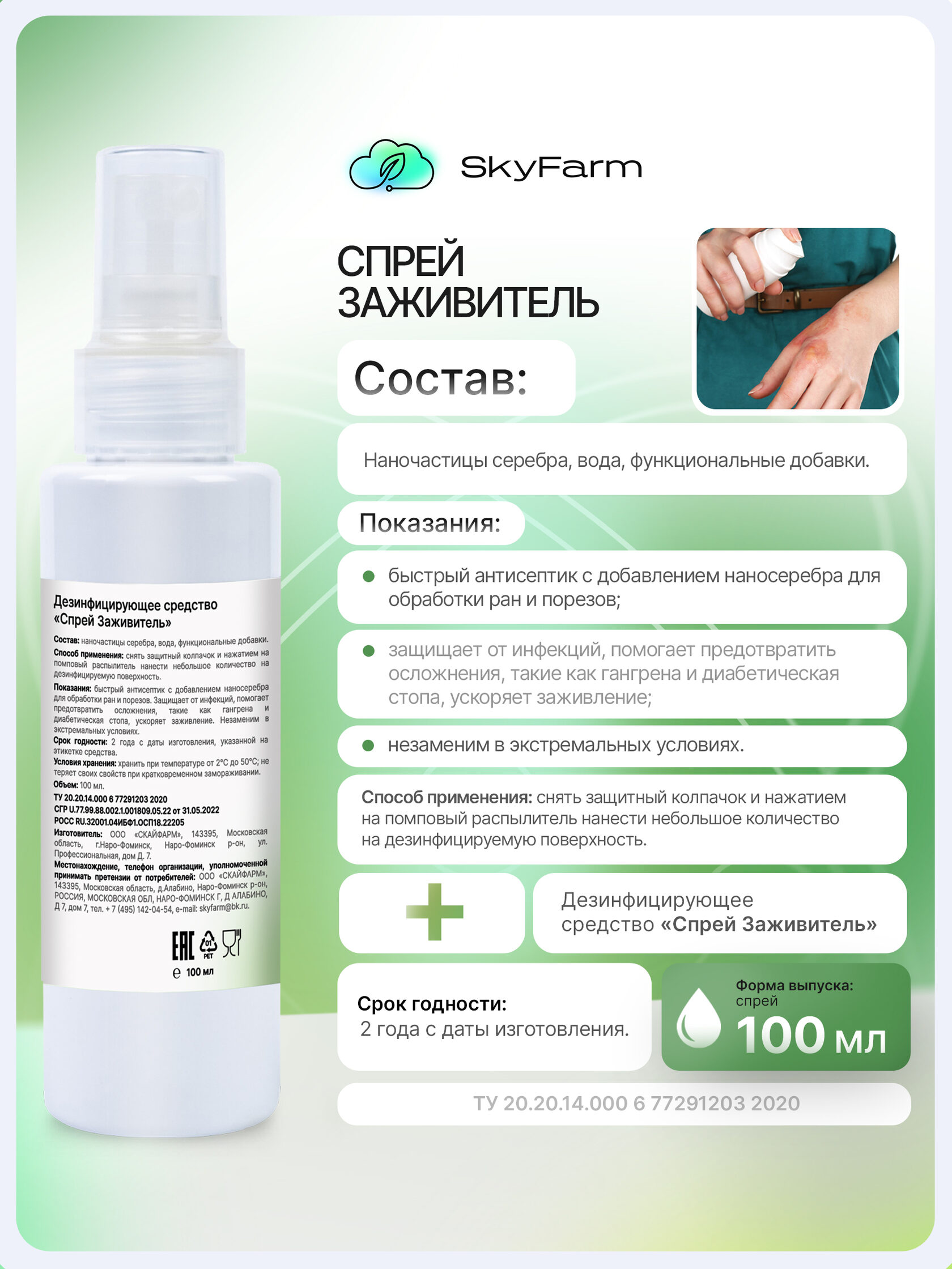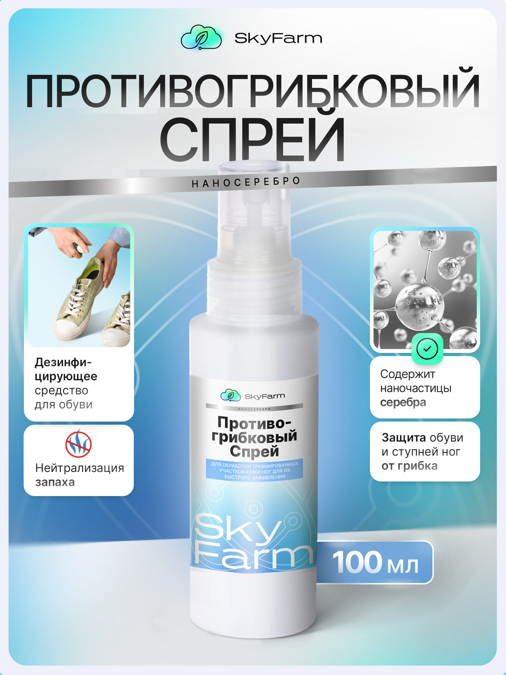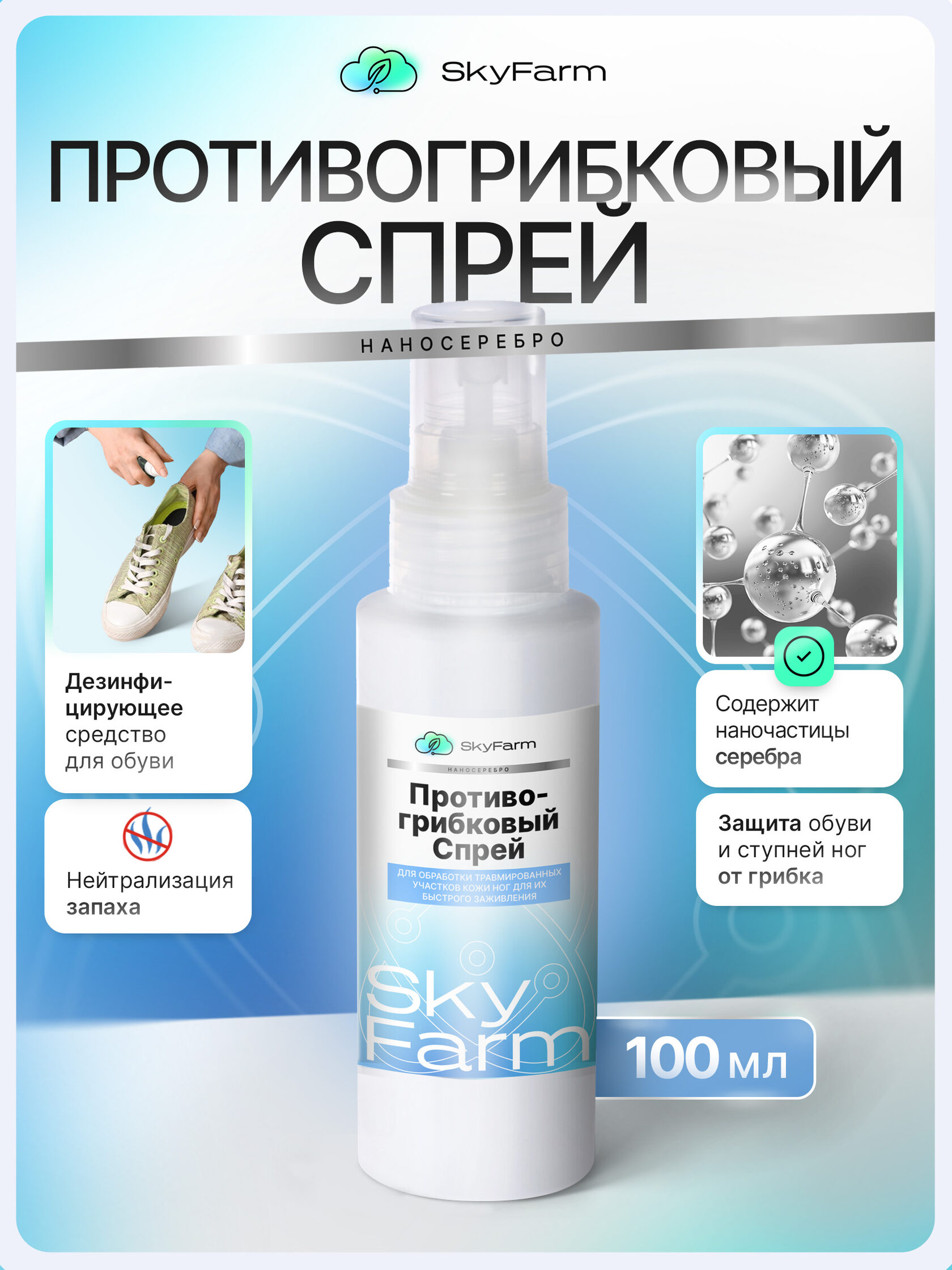 SkyFarm Health — это серия высокоэффективных средств на основе нано-серебра и современных биотехнологий. Они созданы для быстрой дезинфекции, заживления и защиты кожи — дома, на ферме, в дороге, в любых условиях.