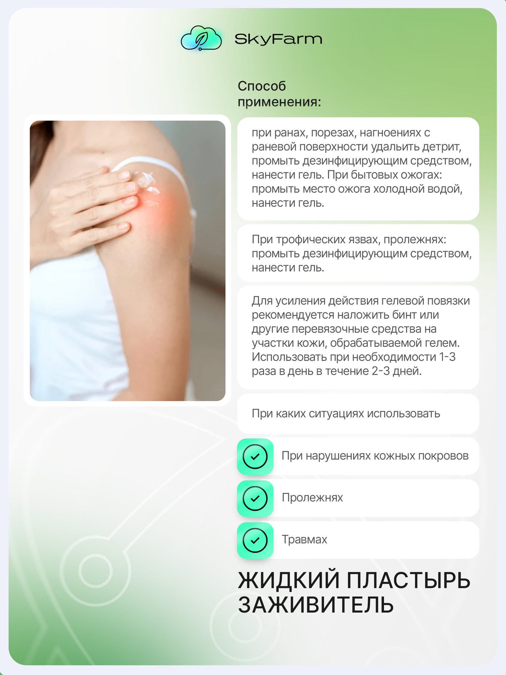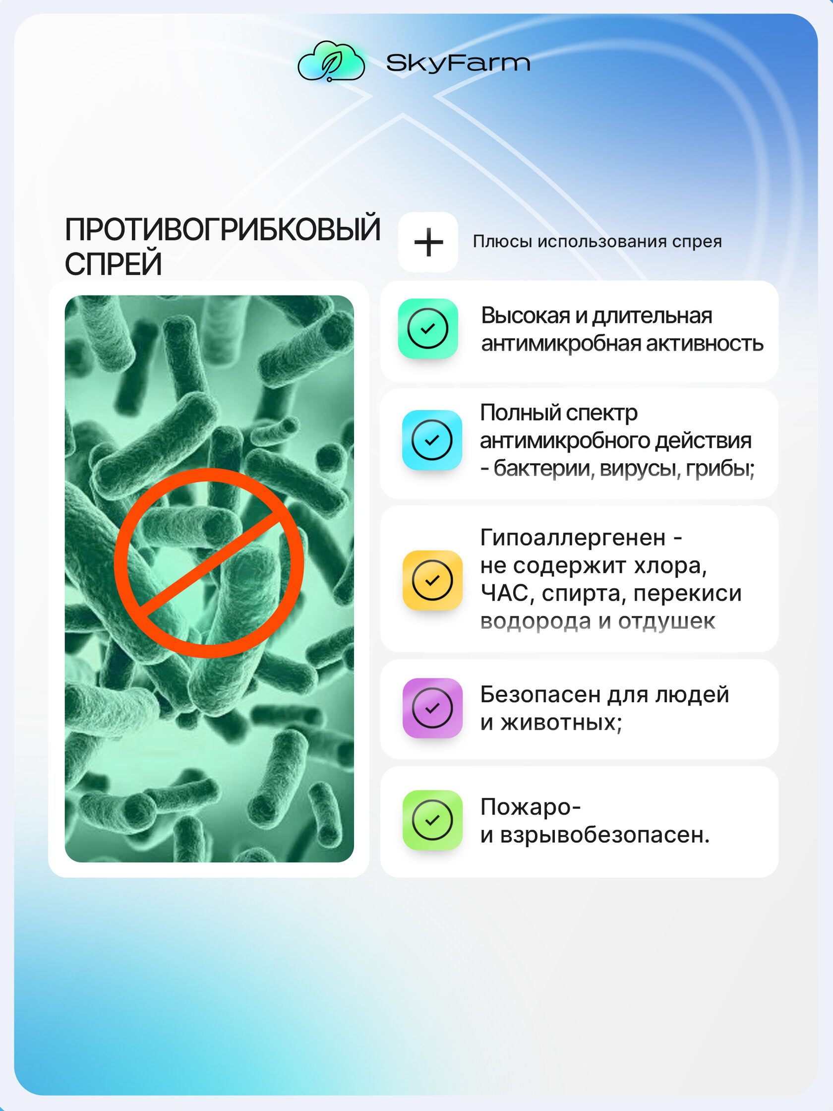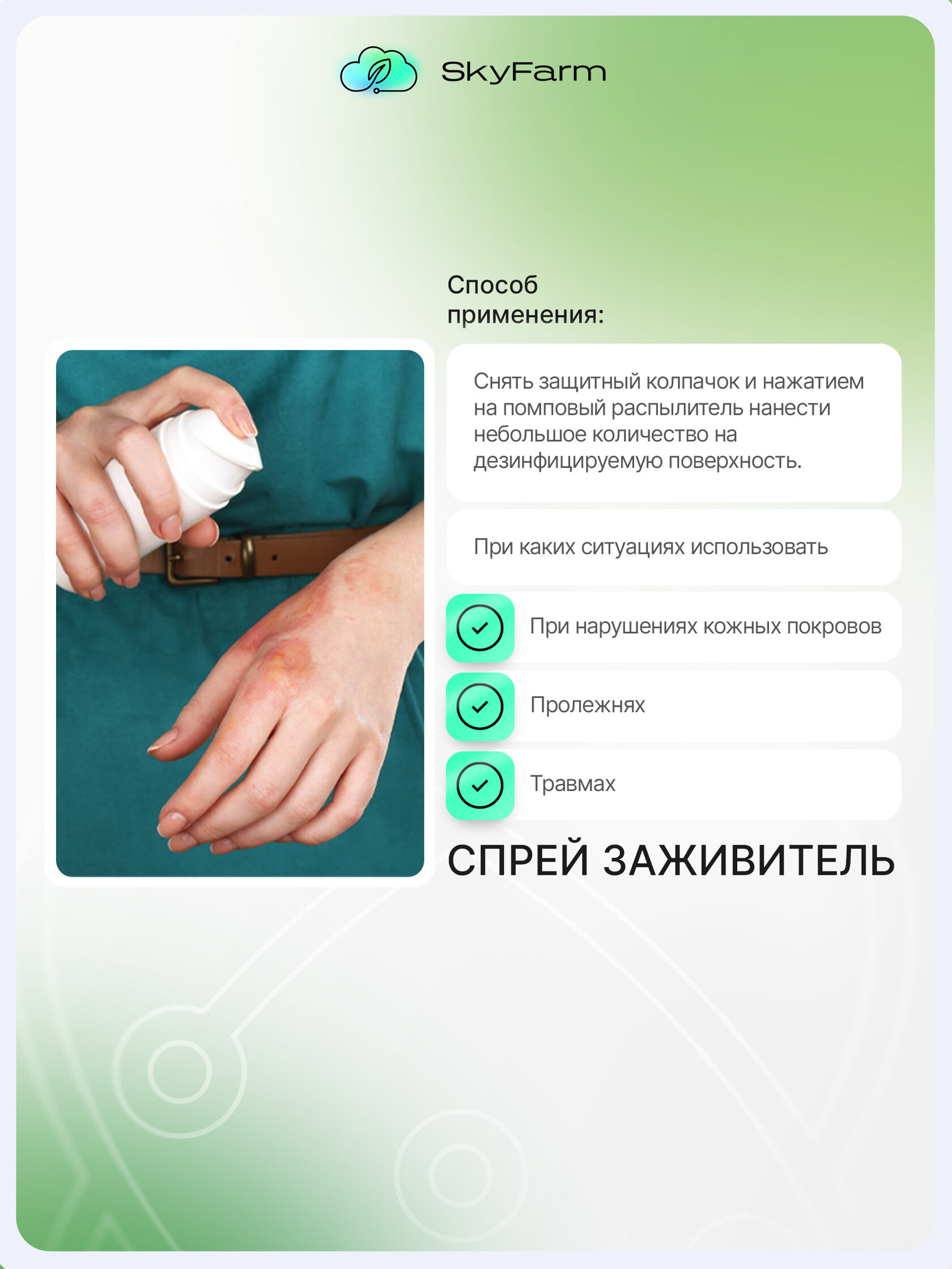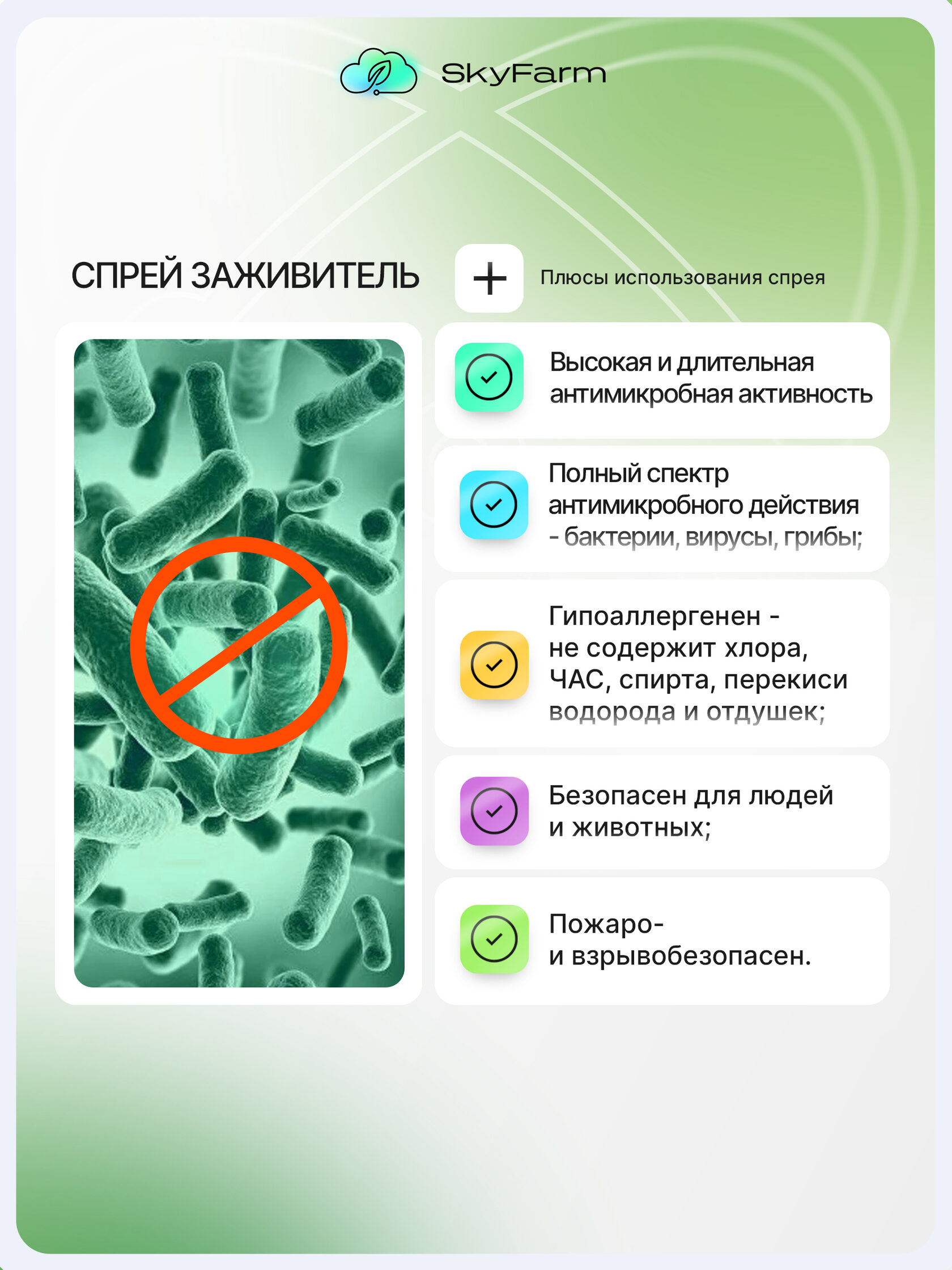 SkyFarm Health — это серия высокоэффективных средств на основе нано-серебра и современных биотехнологий. Они созданы для быстрой дезинфекции, заживления и защиты кожи — дома, на ферме, в дороге, в любых условиях.